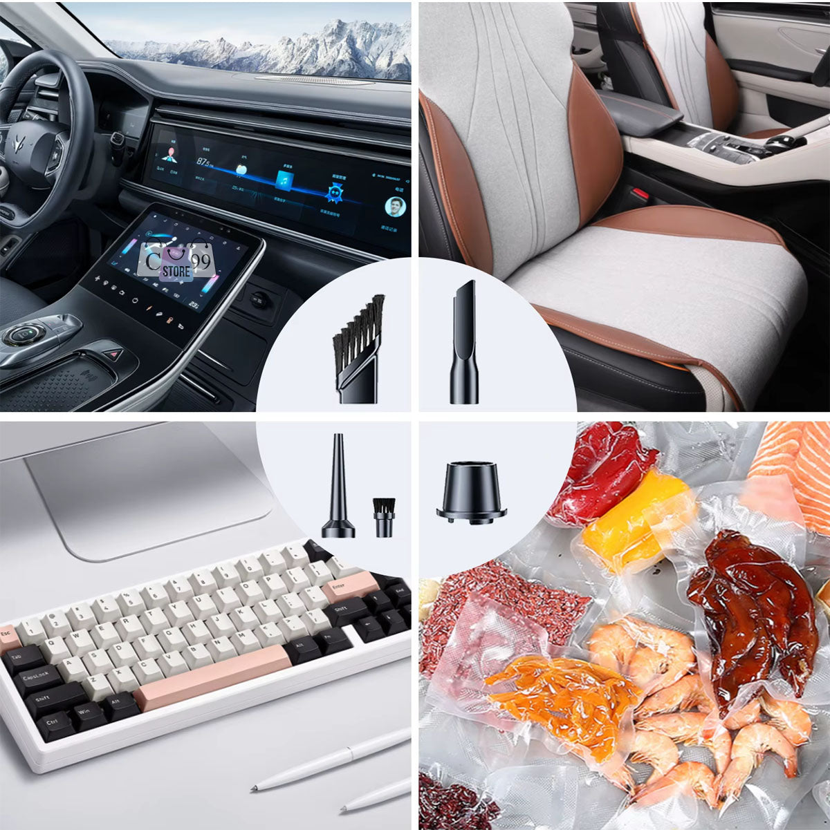 Esta aspiradora multifuncional permite aspirar o soplar, ideal para eliminar polvo, suciedad, migas y partículas diminutas en teclados, esquinas, ranuras y áreas de difícil acceso. Perfecta para el hogar, el coche y equipos electrónicos.