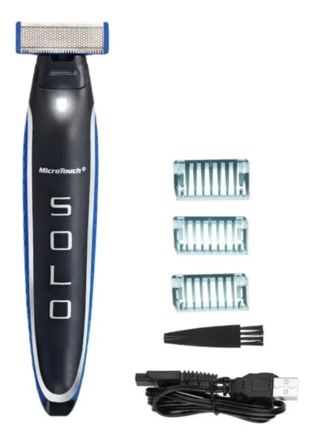 Incluye 1 afeitadora/recortadora, 3 peines de corte intercambiables y cable de carga USB, ideal para el uso diario o para llevar de viaje.